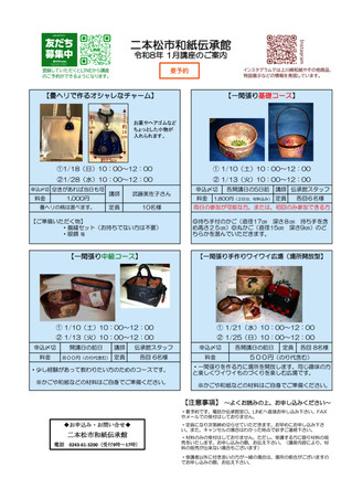 二本松市和紙伝承館令和8年1月講座のお知らせ