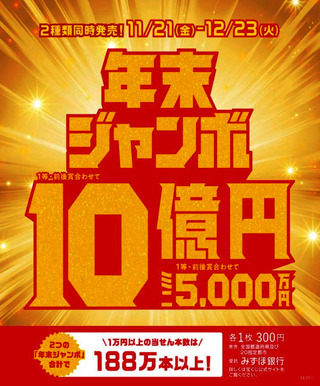 2種類の『年末ジャンボ宝くじ』を同時発売。